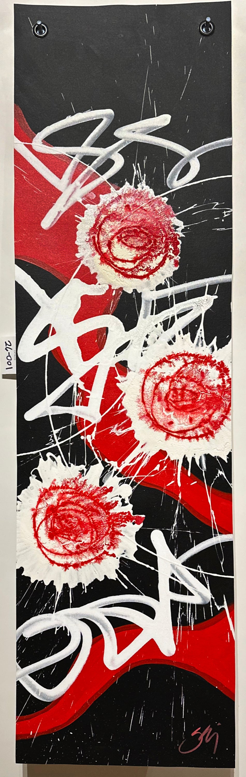 - Painted on unstretched free-hanging canvas.