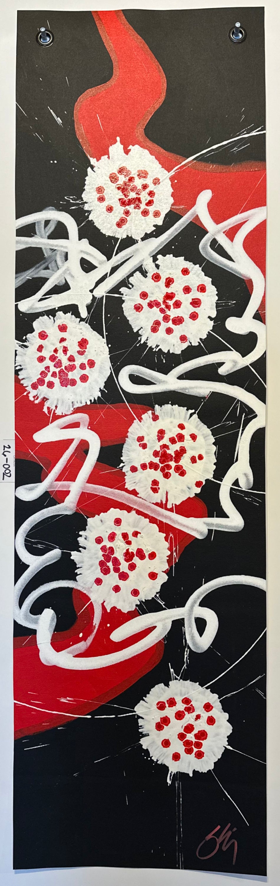 - Painted on unstretched free-hanging canvas.