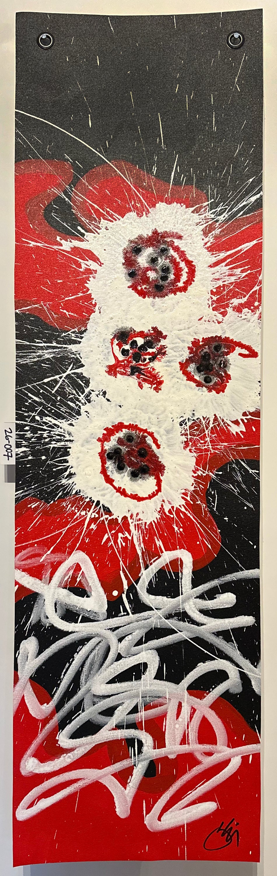 - Painted on unstretched free-hanging canvas.